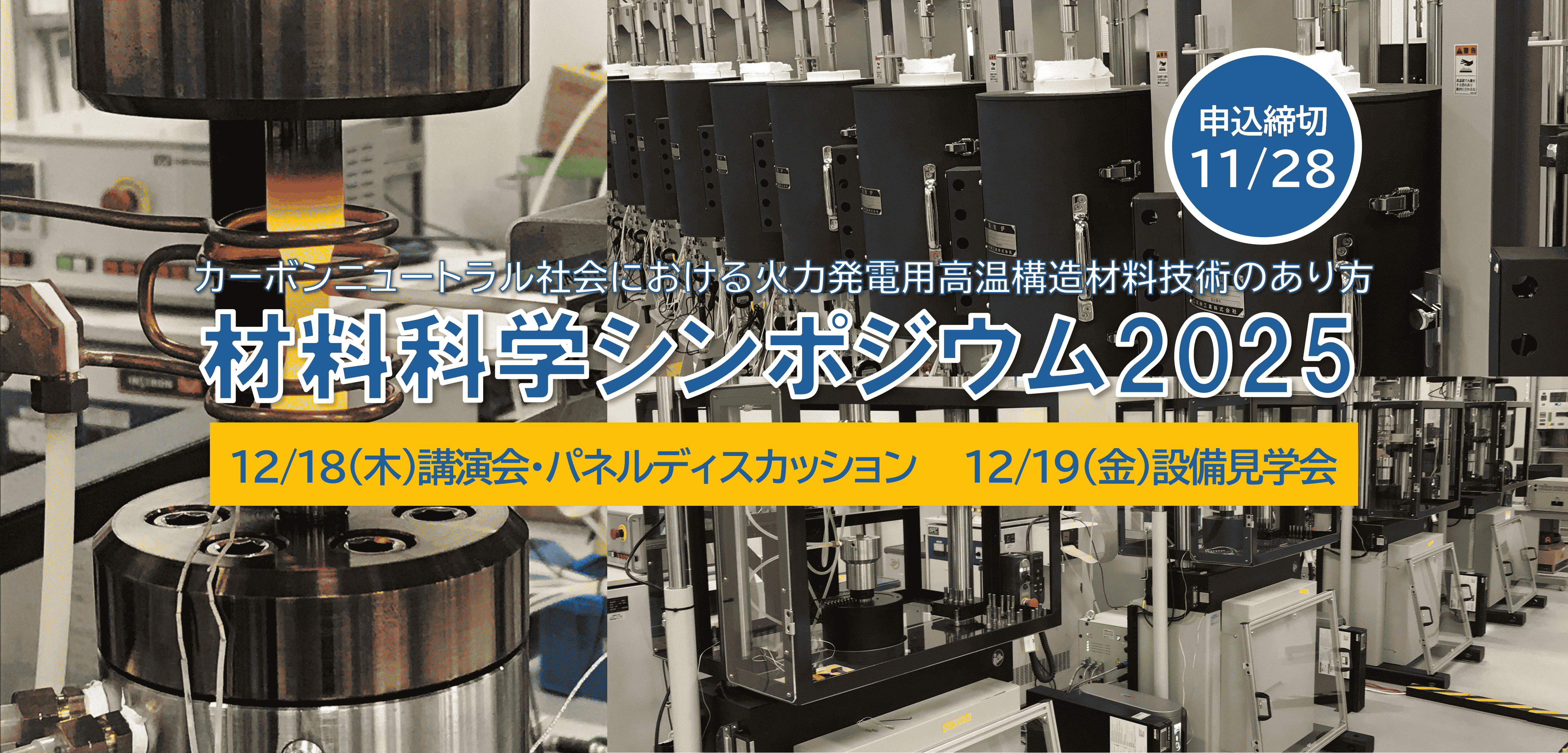 カーボンニュートラル社会においても、火力発電設備は電力供給を支える大切な基盤です。本シンポジウムでは、現場で日々向き合う実務、アカデミアの皆様と当所研究者が、火力発電用高温構造材料の研究戦略や将来展望について議論し、対話を通じた新たなネットワーク構築と研究方向性の共有、課題解決に向けた連携体制づくりを目指します。未来をともに切り拓く仲間として、ぜひご参加ください。